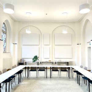 - Moderations- und Workshopmaterialien inklusive [Flipcharts, Metaplanwand, Moderationskoffer]